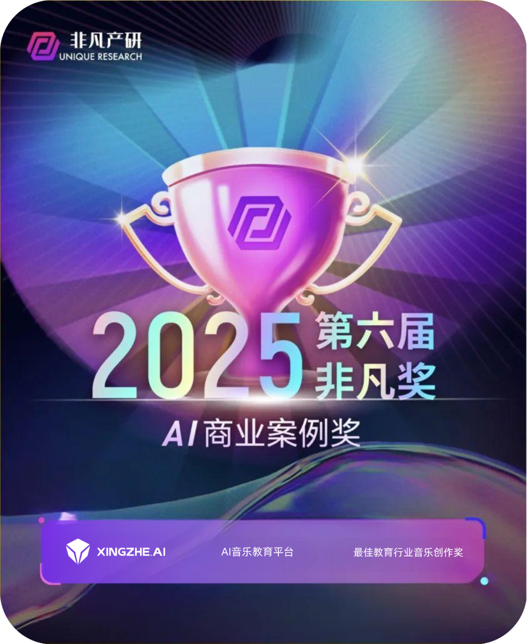 近日,由非凡产研发起的2025年第六届「非凡奖」获奖名单公布。行者AI旗下【AI音乐教育平台】与【行者AI多模态大模型】分别荣获「AI商业案例奖——最佳教育行业音乐创作奖」及「AI原生产品奖——最佳文娱产业大模型」奖项,在AI领域的产品技术实力获得业界广泛认可。