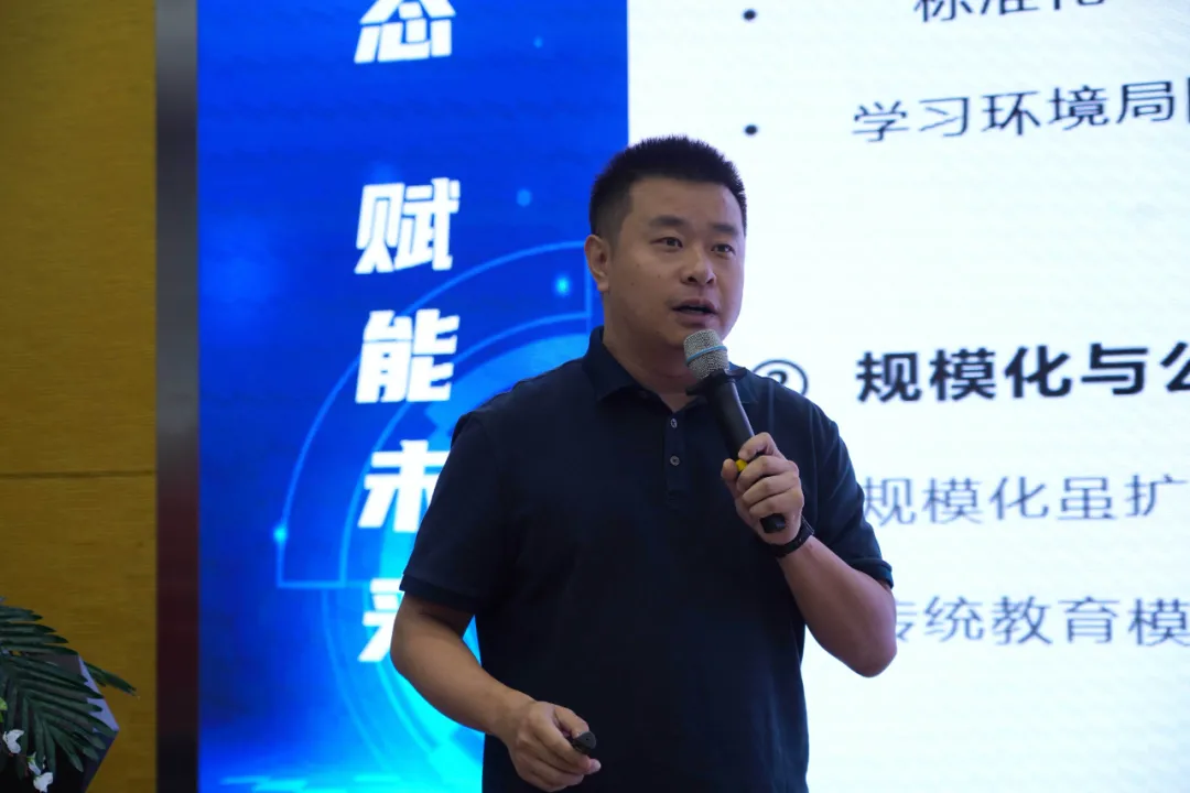 紧接着,行者AI副总裁杨杰先生则以《人工智能赋能智慧教育新生态》 为题,精彩展示了行者AI在“AI+美育”领域自主研发的一系列产品和解决方案,包括“AI音乐教育平台”、“AI智能助教”、“AI心理咨询师”、“AI英语阅读”等,其中,杨杰重点讲解了“AI音乐教育平台”。